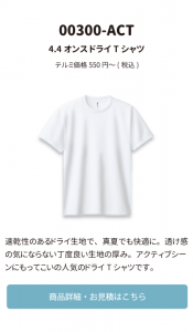 商品ページの「オリジナルプリント見積もり」ボタンより、お気軽にお見積りをご依頼ください!
