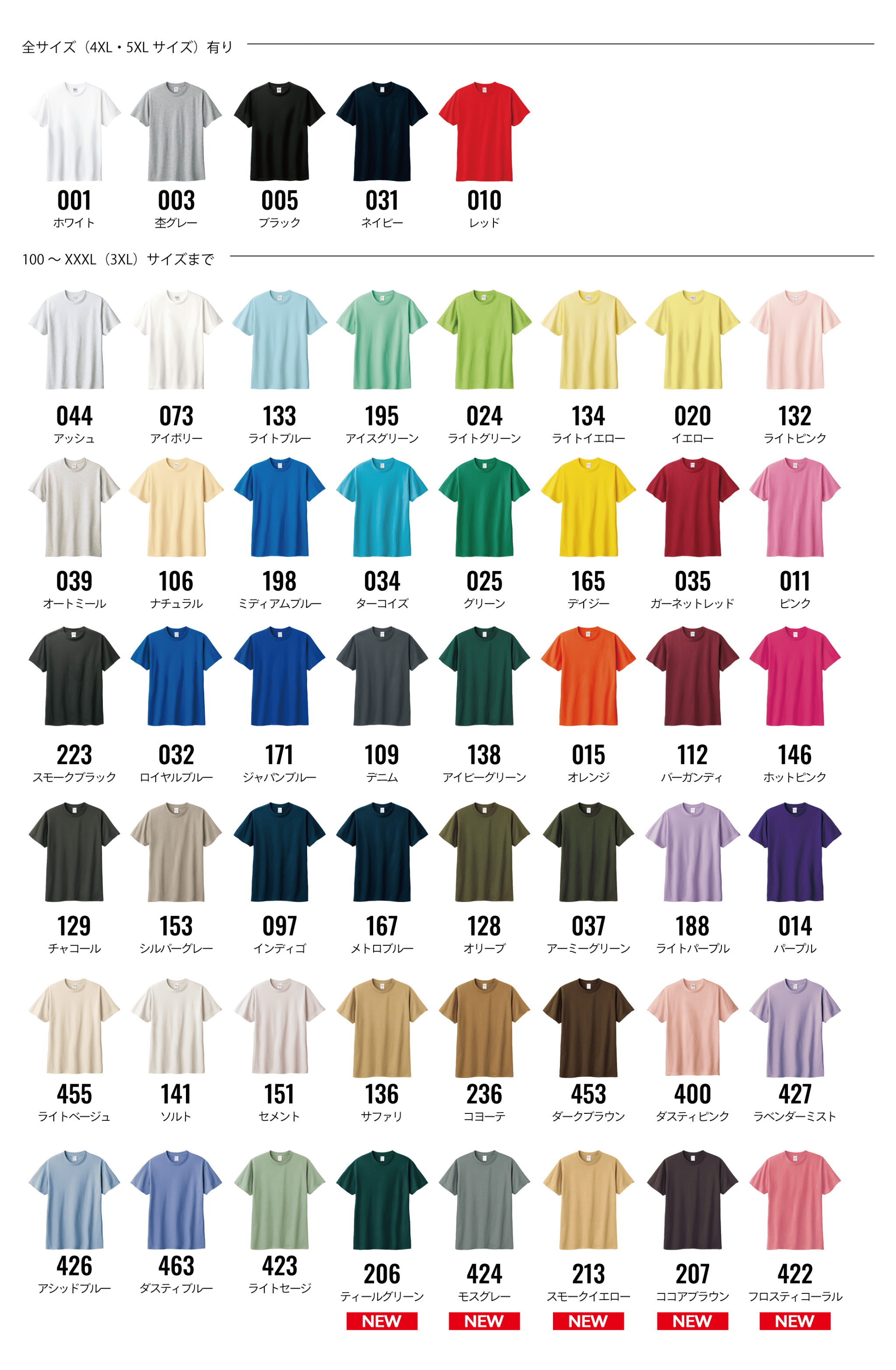 | 100~XXXL 対応 カラー | ¥715 | ¥880 | - | ||||||||||||||