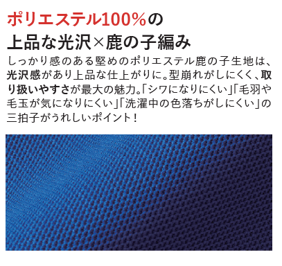 | 素材 | ポリエステル100% 鹿の子 |
