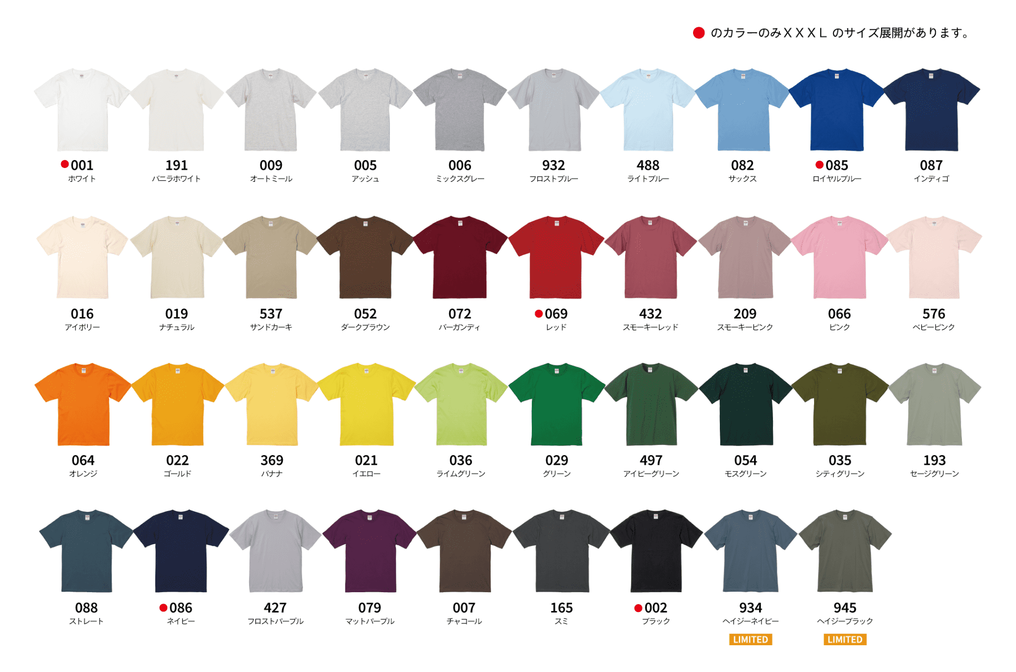 | カラー(XXXLサイズ有り) | ¥1,100 | ¥1,430 | ¥1,650 | ||||