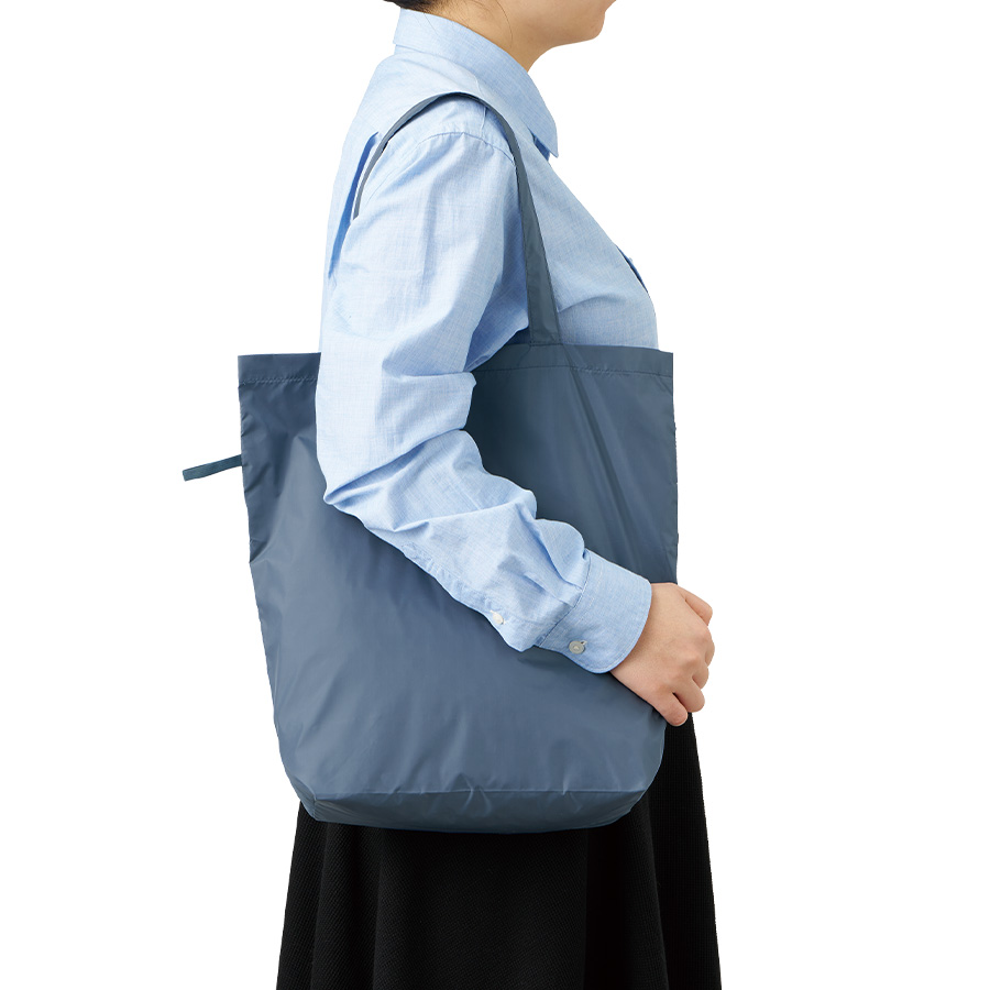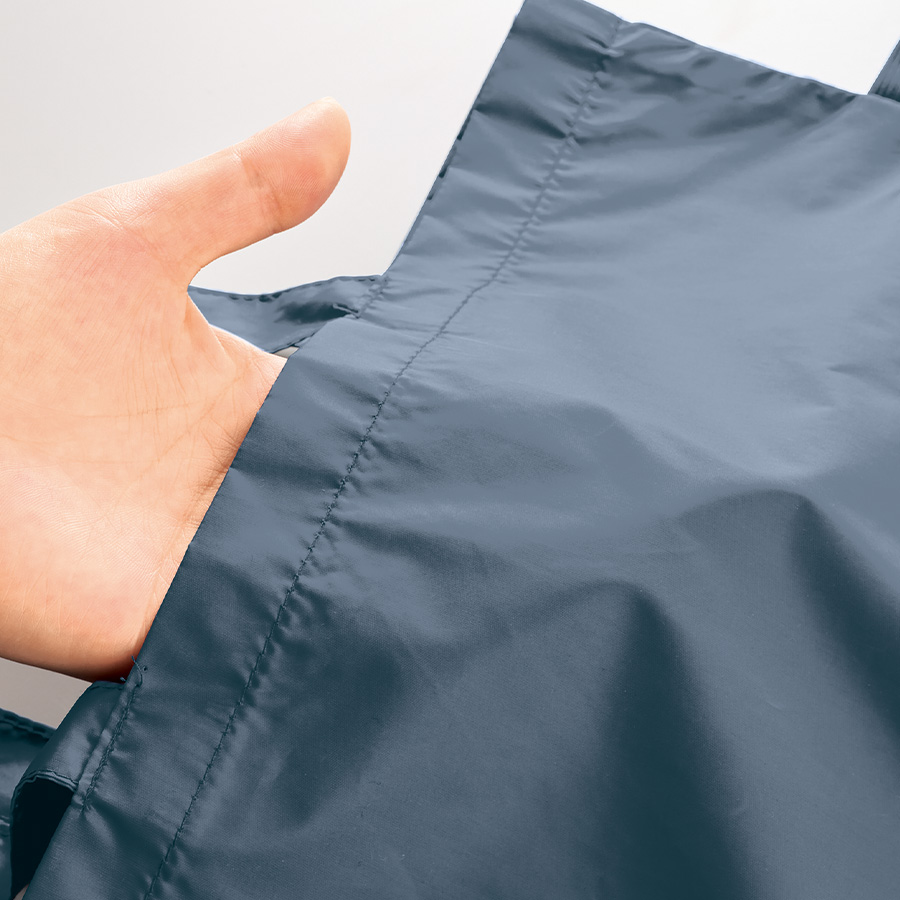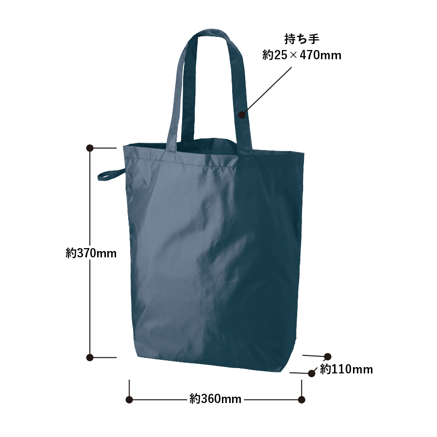 超薄手・超軽量かつ、ゴムで止めていただくことで極小サイズになり、持ち歩き用のエコバッグとしてぴったりのアイテムです。
